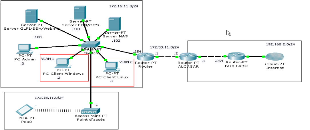 → Un serveur Windows comportant un GLPI, un SSH et un Webmin.